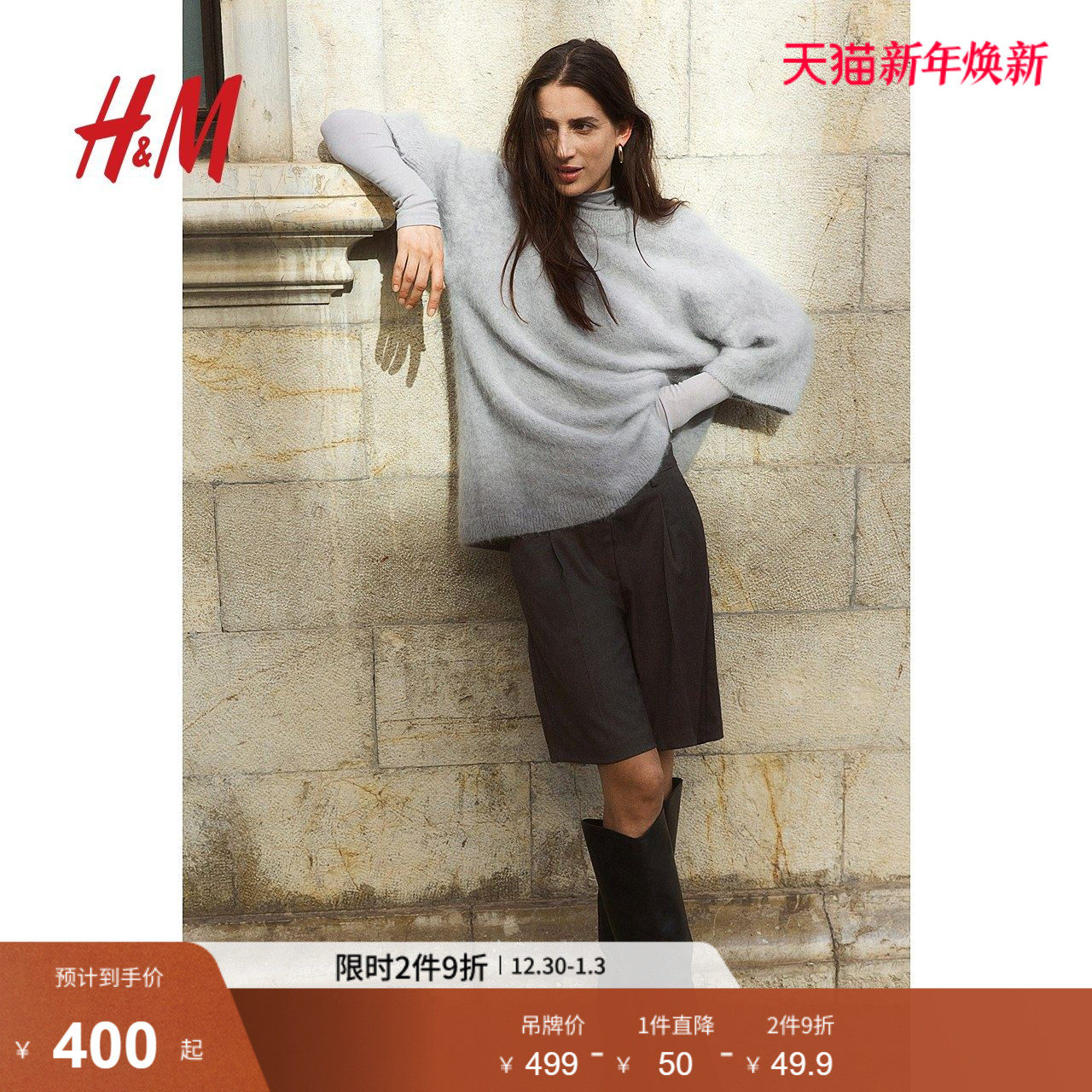 HM女装冬季毛针织衫马海毛混纺套衫1274316