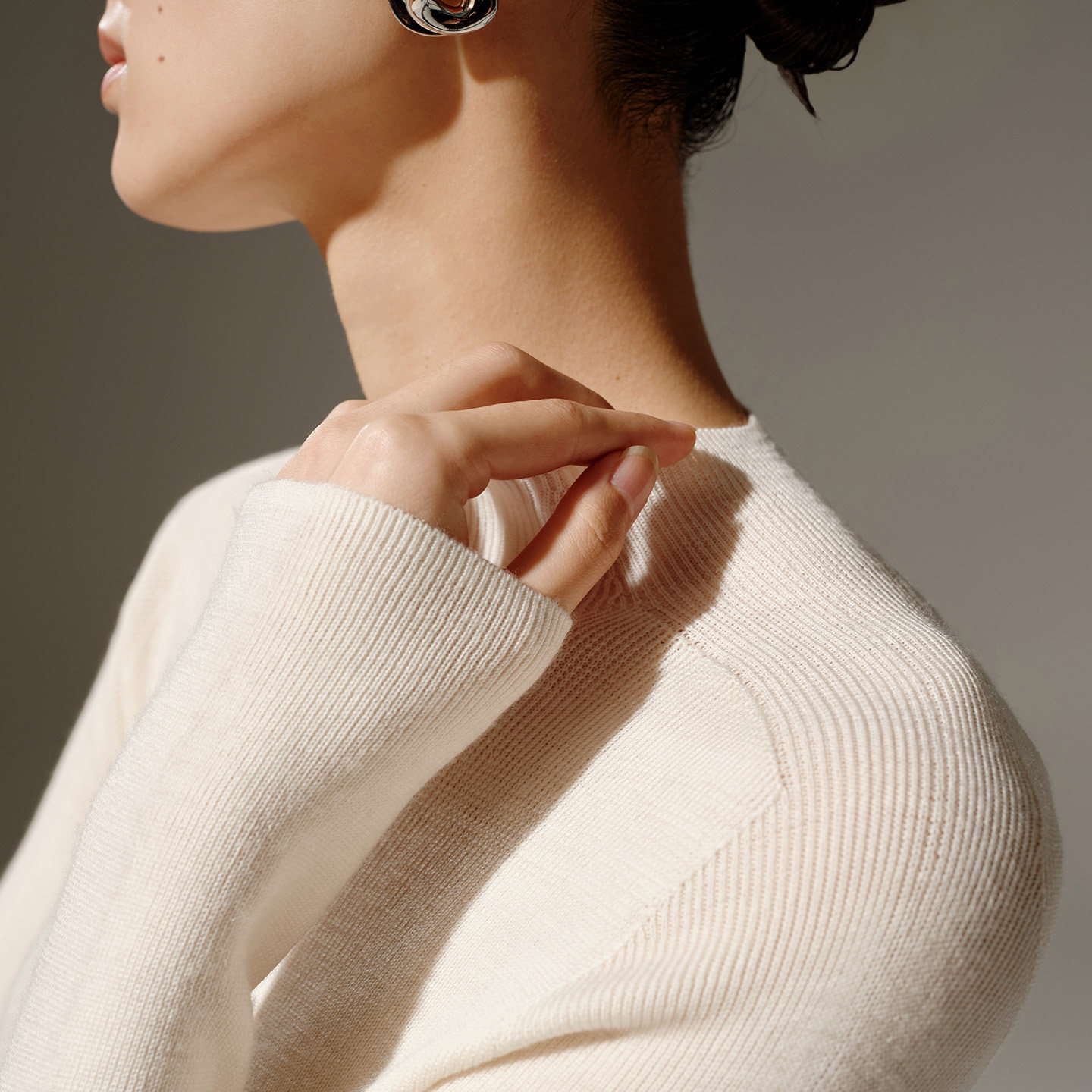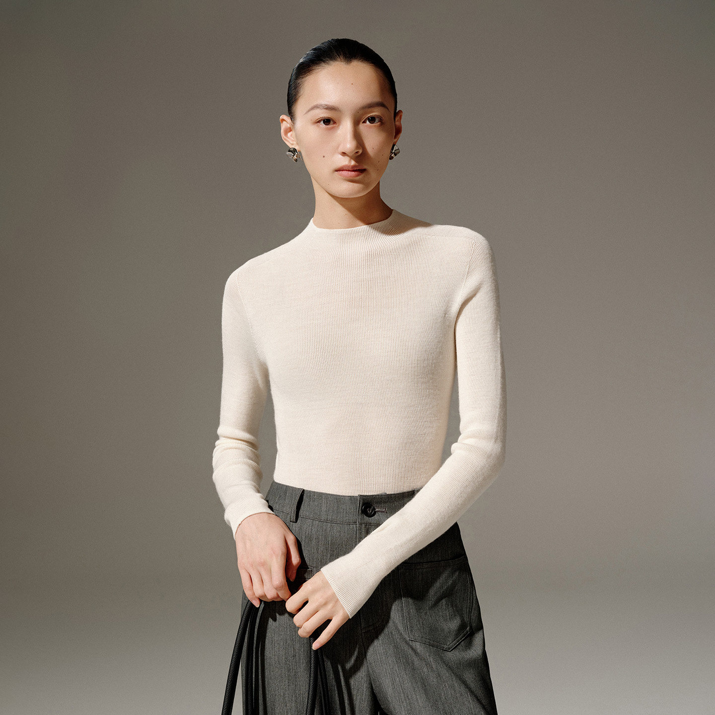 肩部桂花针工艺、适宜高领、100%绵羊毛纱线