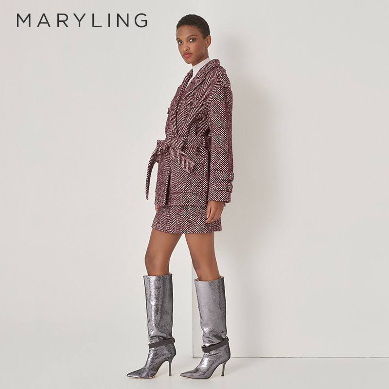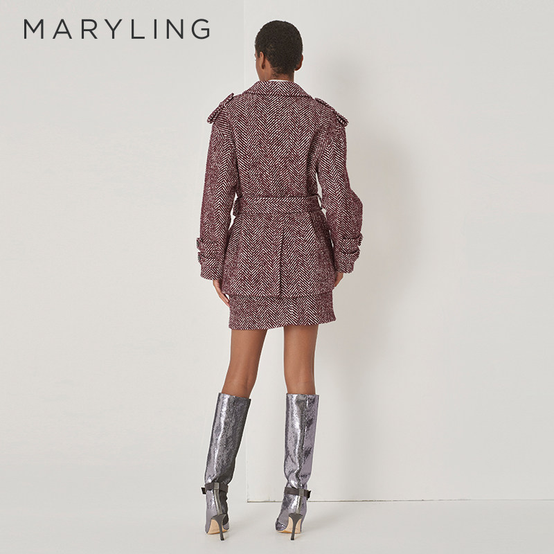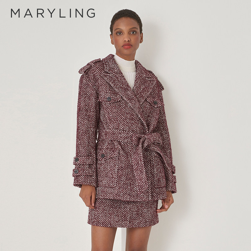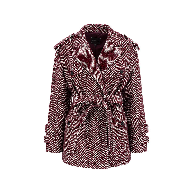 MARYLING玛俪琳秋冬季新品勃艮第红通勤风高级感人字纹短外套