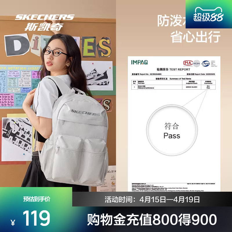 斯凯奇新品双肩包背包防泼水大容量口袋书包旅游通勤轻便登山包