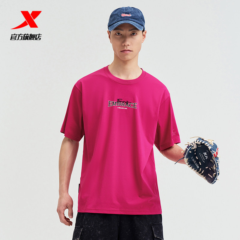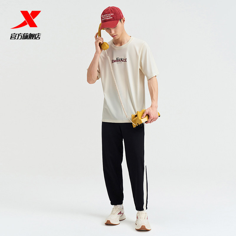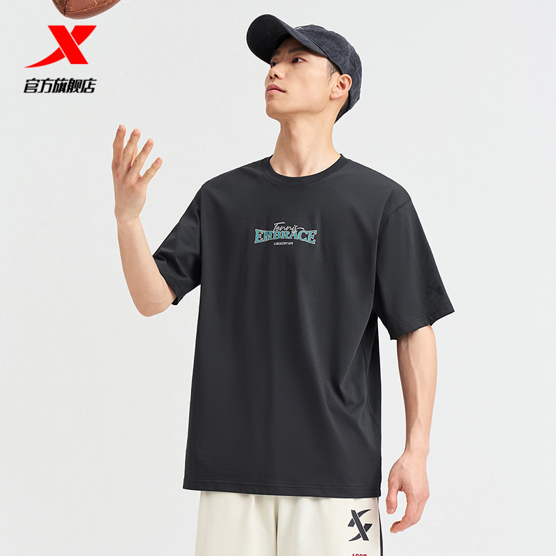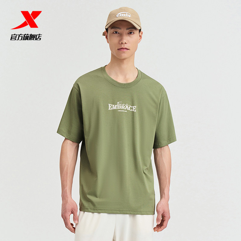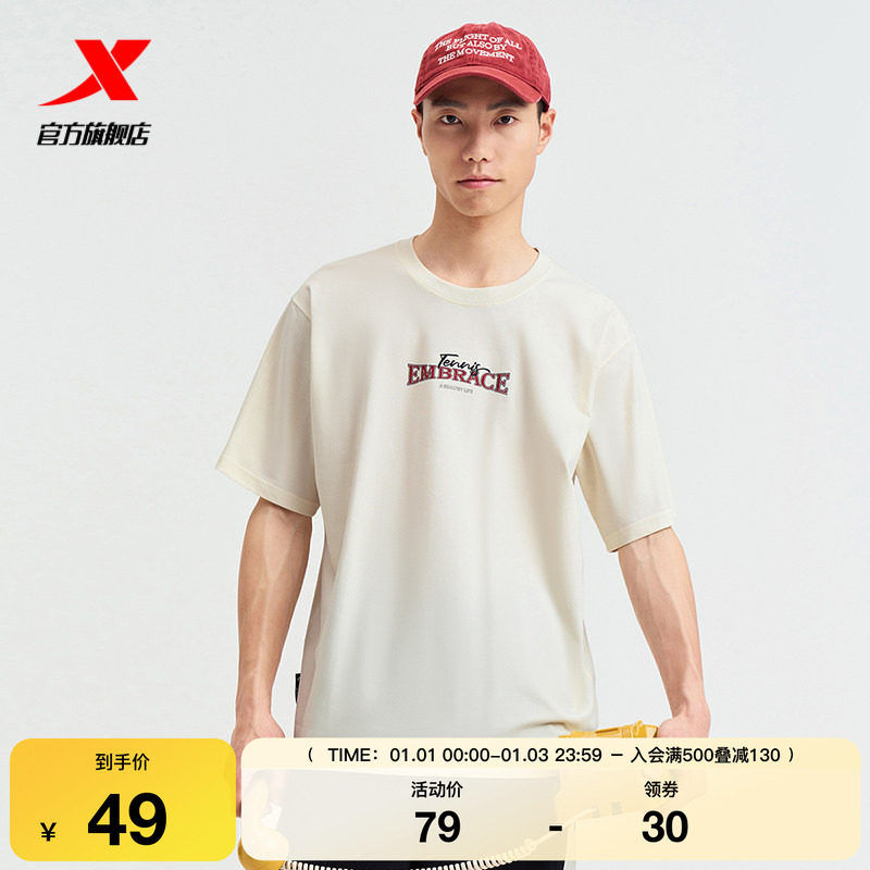 特步短袖男2025夏官方复古半袖圆领上衣宽松运动T恤976229010556
