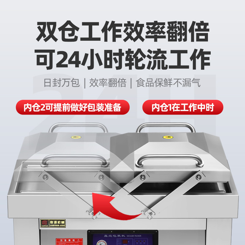 联源双室真空机包装机大型商用工业用大型全自动抽封口一体食品保鲜包装密封熟食生鲜大米茶叶打包干湿两用