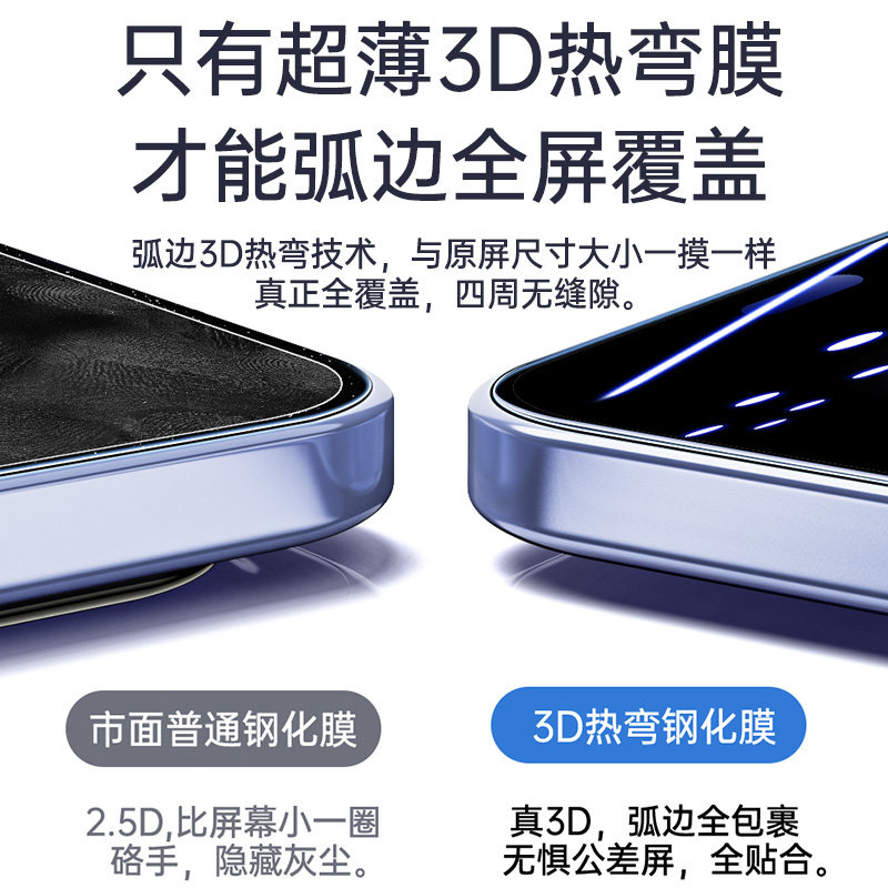 倍思3D热弯钢化膜适用苹果iPhone17ProMax钢化膜16/15Pro手机膜ip保护贴膜pm防窥屏幕膜全覆盖新款ar抗反射官