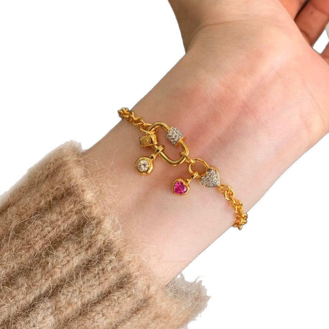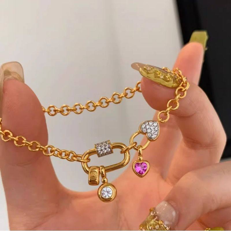 法式复古镶钻链条爱心跑环手链2025新款时尚简约高级感精致手饰品