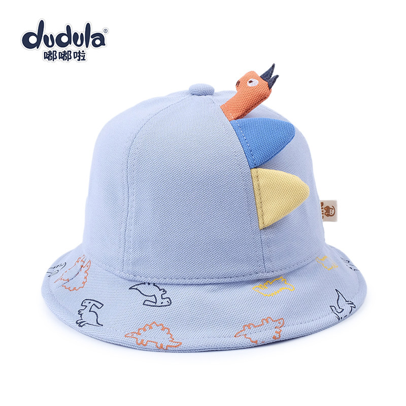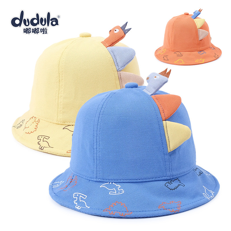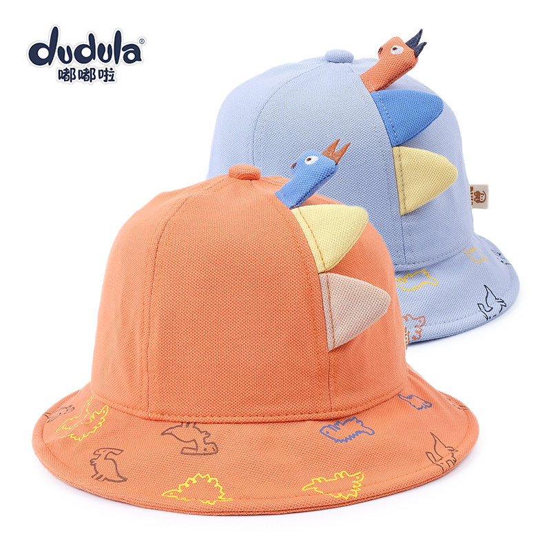 嘟嘟啦卡通儿童盆帽遮太阳帽子春秋季款婴幼儿男宝宝渔夫帽小恐龙