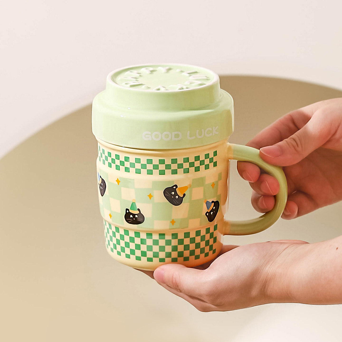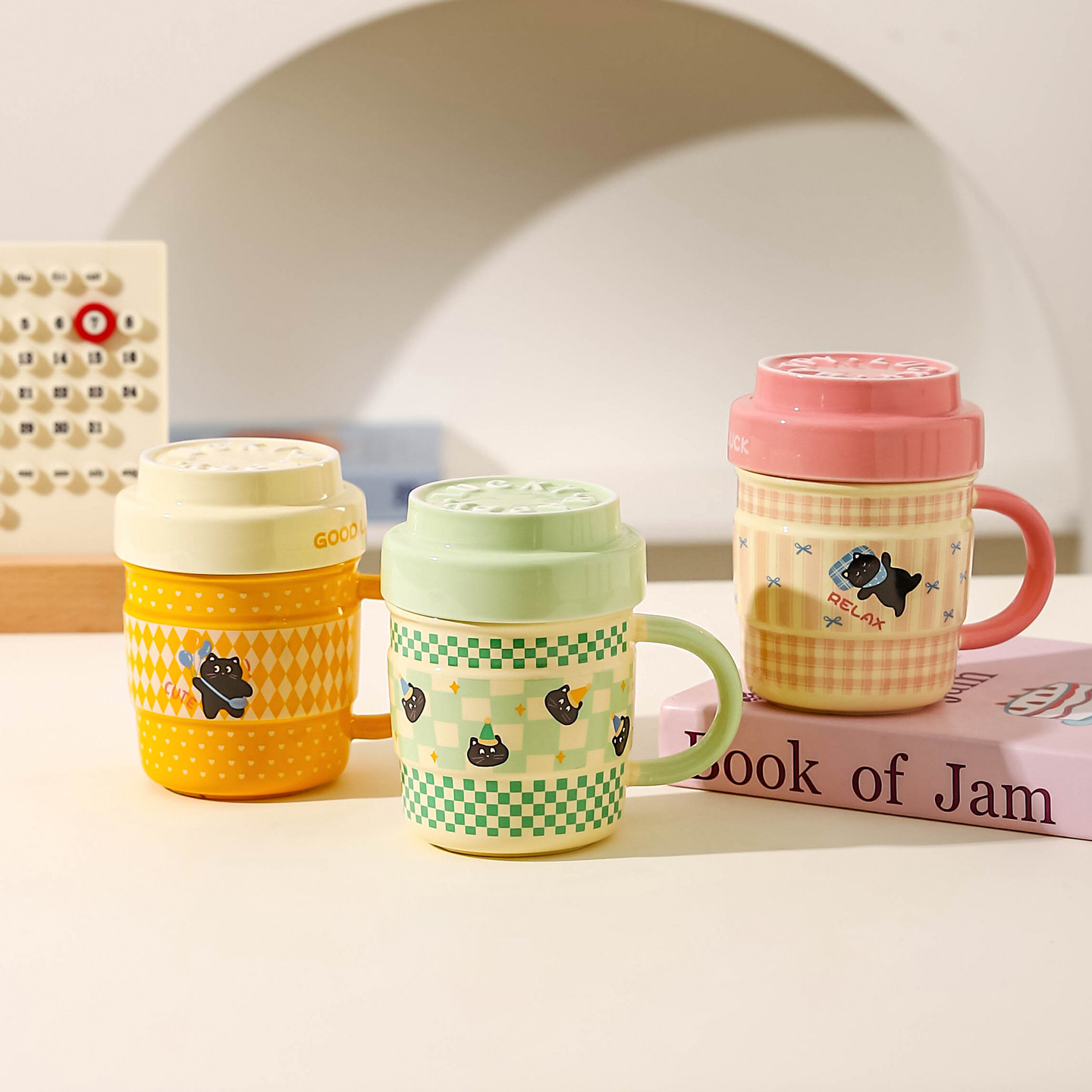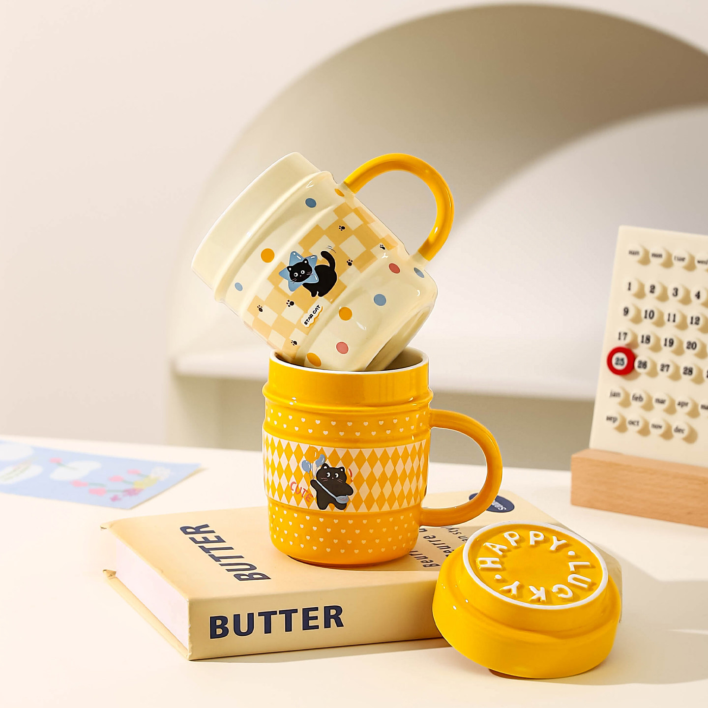 趣皿可爱陶瓷杯卡通马克杯家用办公室大容量咖啡杯情侣水杯牛奶杯