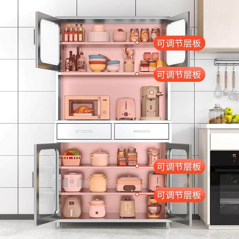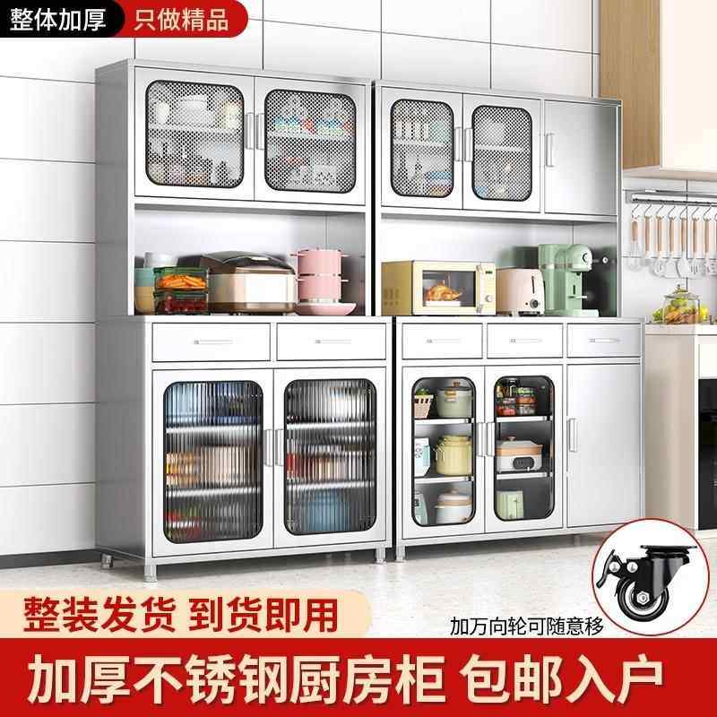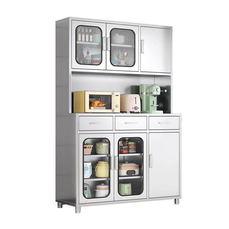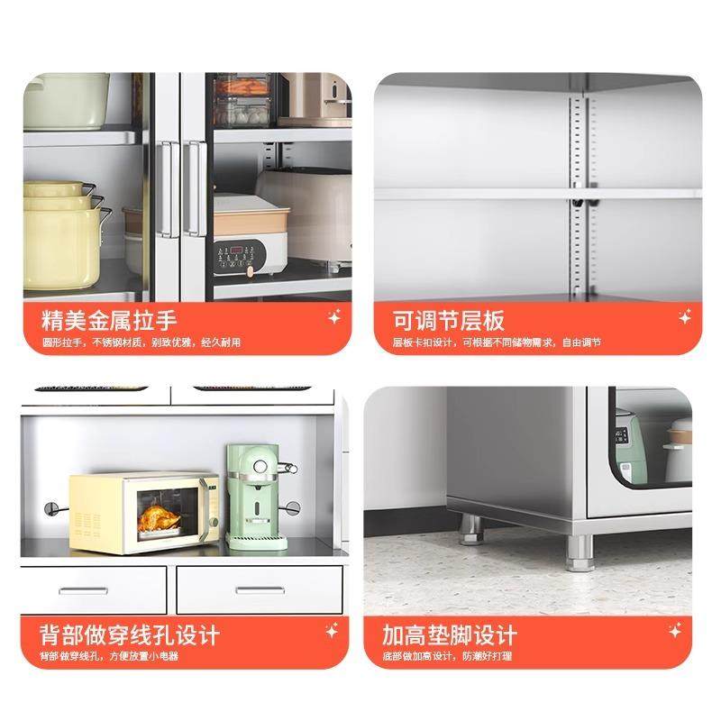 麦比梵不锈钢餐边柜厨房碗柜橱柜带抽屉微波炉电饭煲储物柜农村菜柜定制床笠拉车