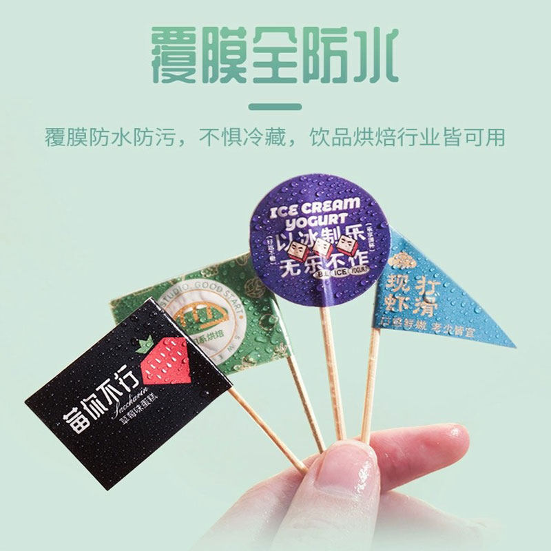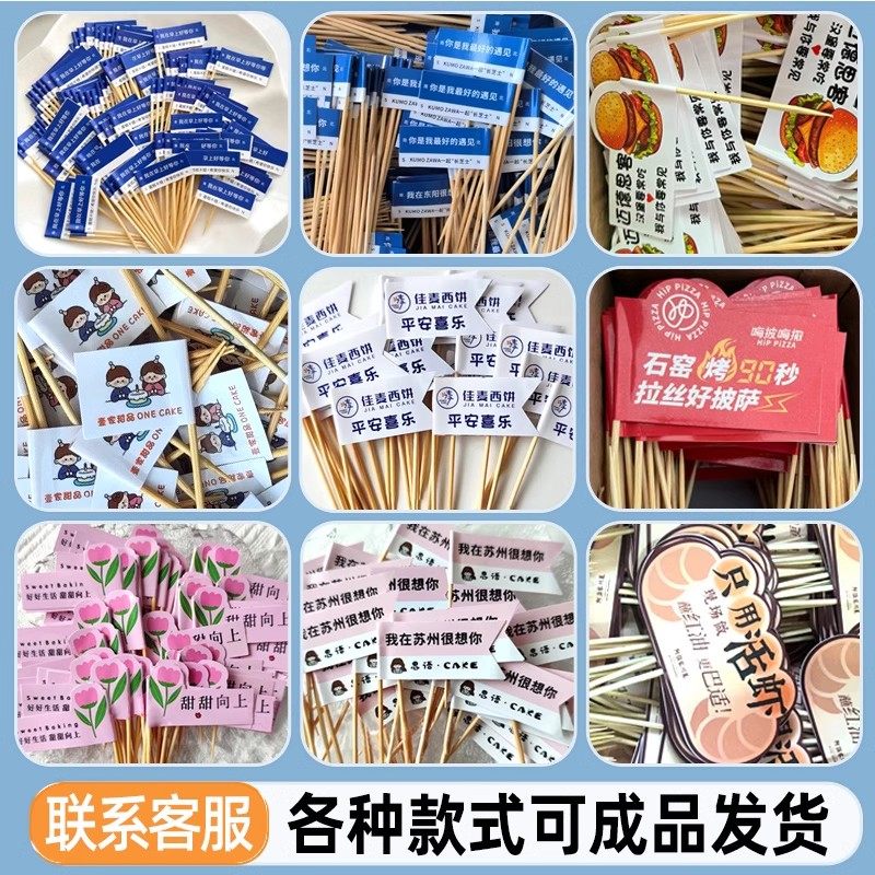 牙签插旗定制火锅菜品标签ins风网红路牌广告冰粉汤圆果拼插卡汉堡蛋糕甜品冰淇淋logo二维码竹签小旗子定做