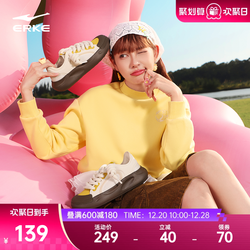 安踏轻松丨板鞋小白鞋女潮流冬季学生厚底增高运动鞋子轻便休闲鞋