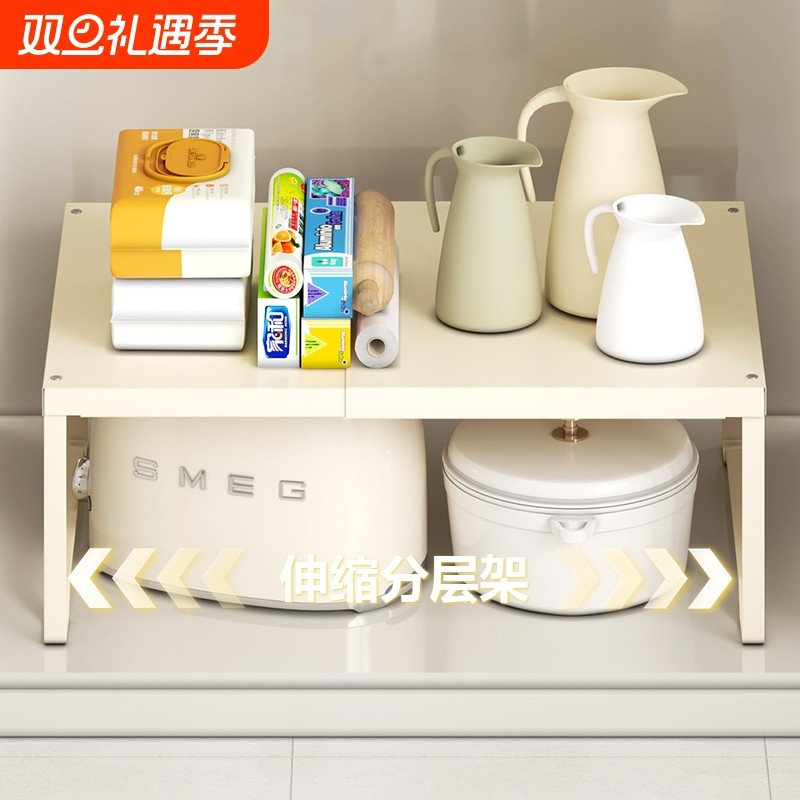 可伸缩厨房置物架橱柜内分层架多层柜子隔板微波炉收纳架衣柜台面