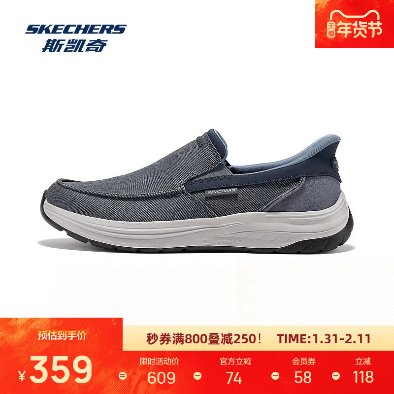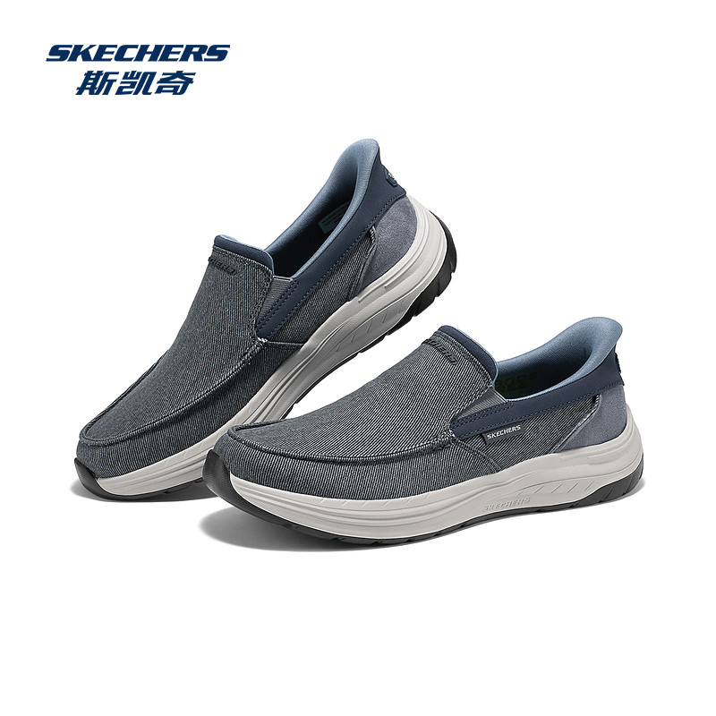 Skechers斯凯奇新款男鞋一脚蹬低帮休闲鞋透气织物合成革