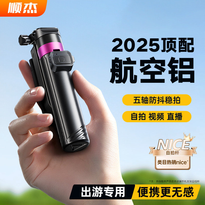 出游专用】手机自拍杆2025新款旅游便携式落地通用三脚架360度旋转蓝牙迷你手持拍照直播神器防抖支架演唱会