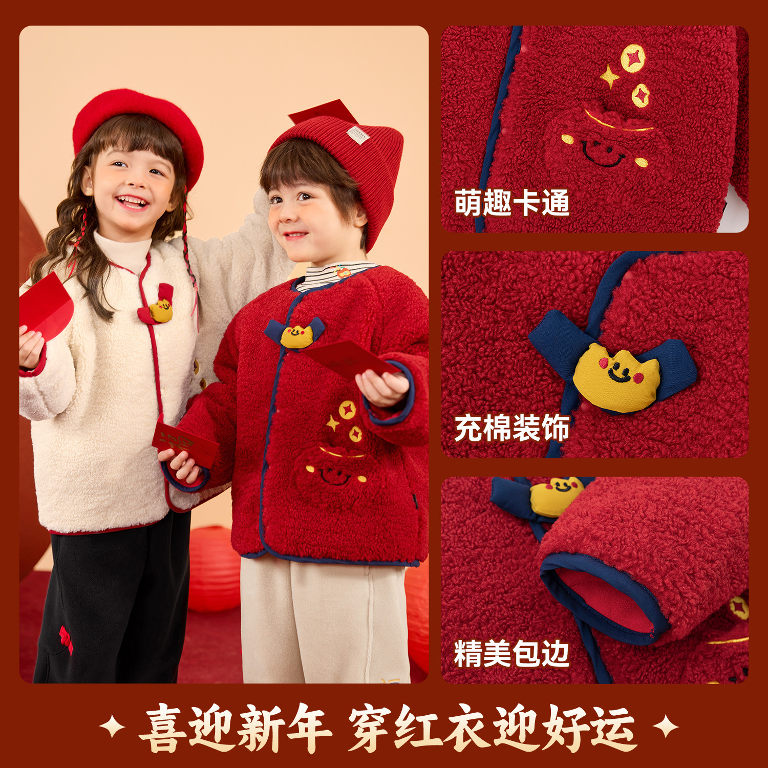dudujia儿童外套红色男童新中式拜年服女童新年唐装宝宝冬季衣服a
