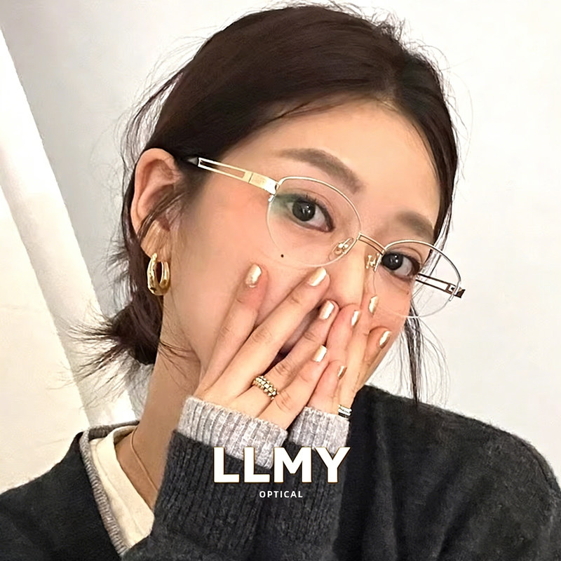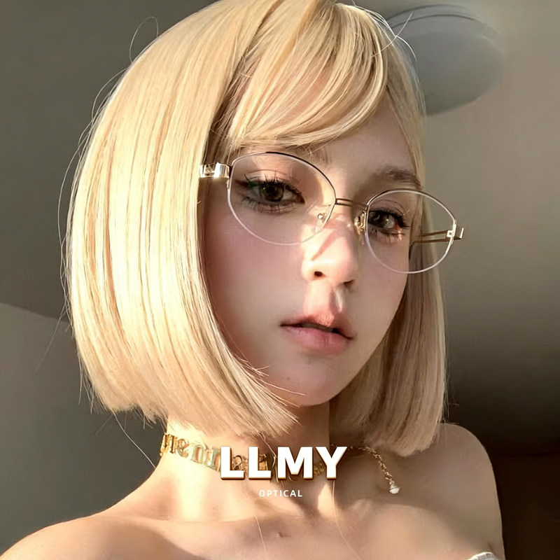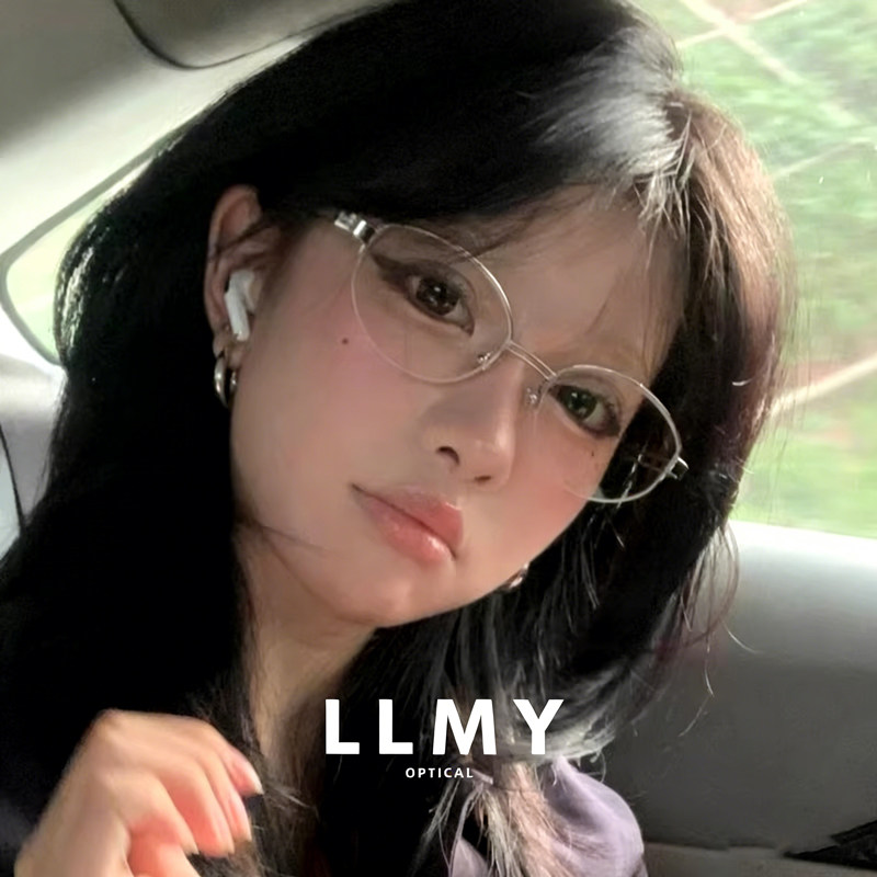 老钱风半框眼镜近视女度数可配椭圆格雷系金丝素颜防蓝光眼镜框架