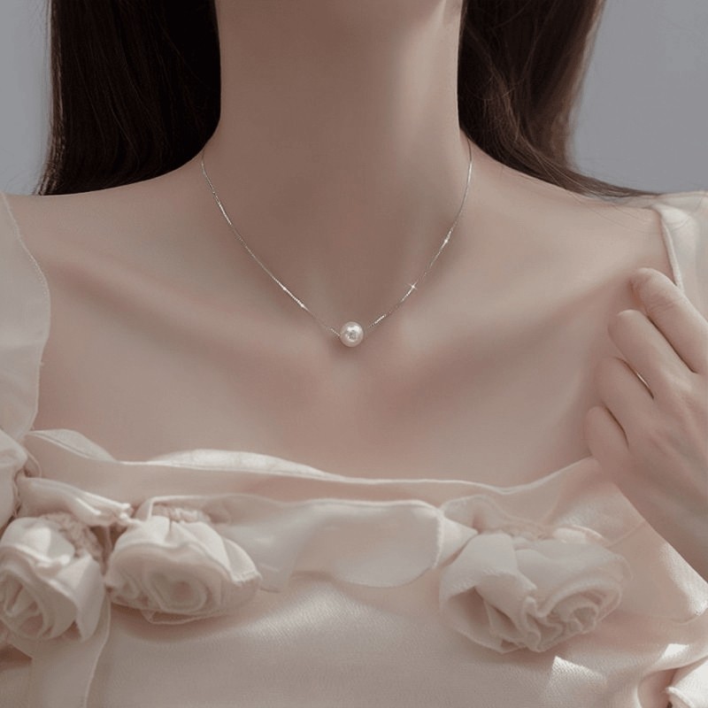 单颗珍珠钛钢项链女2024年新款气质锁骨链轻奢小众颈链防过敏