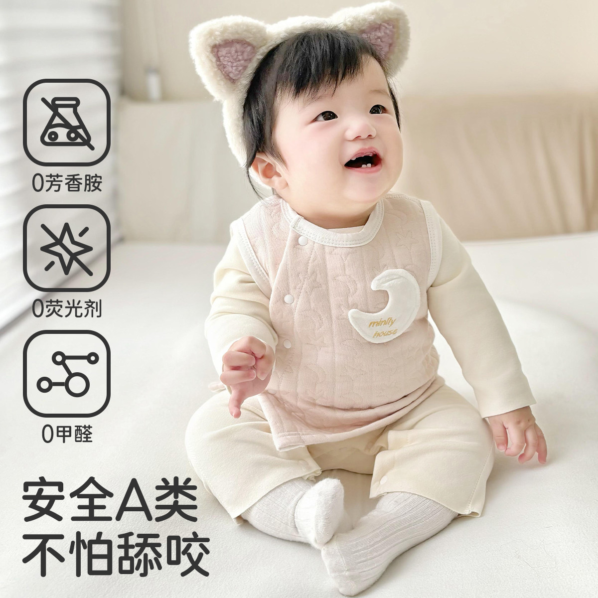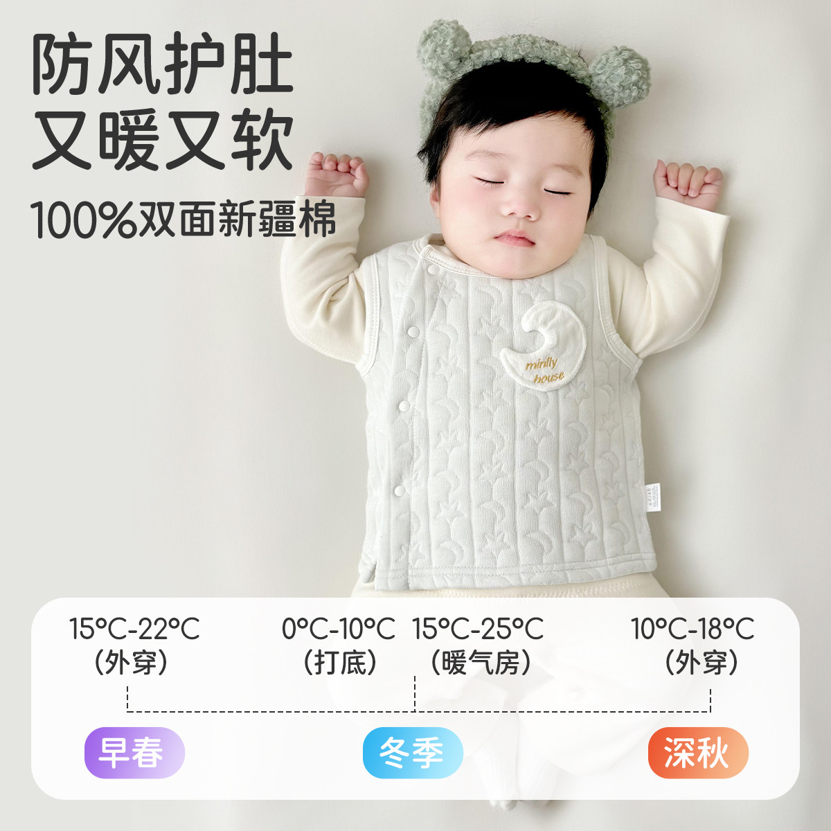 婧麒婴儿马甲春秋外穿纯夹棉新生儿宝宝坎肩背心秋冬保暖防凉秋装
