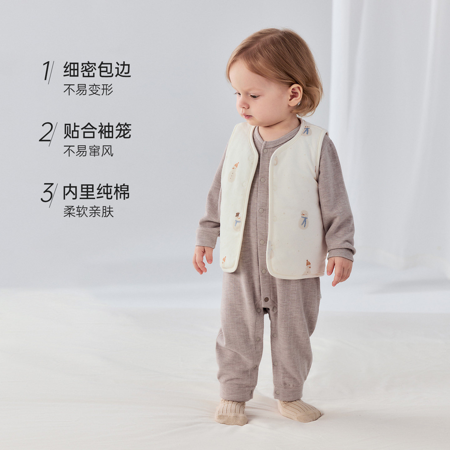 babylove婴儿马甲夹棉秋冬保暖背心马褂宝宝坎肩外穿马夹雪宝墩墩