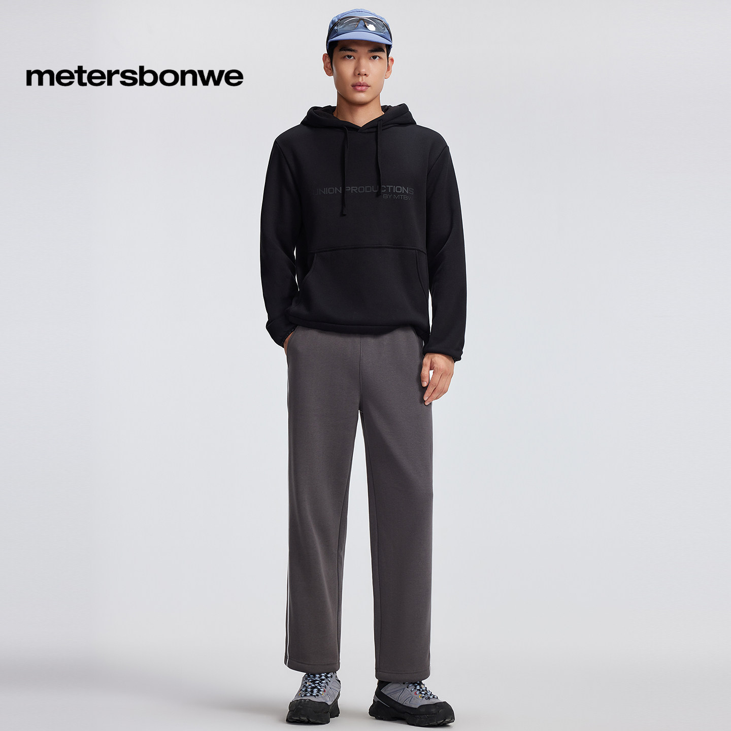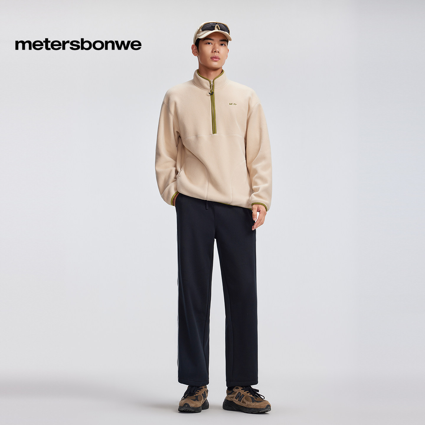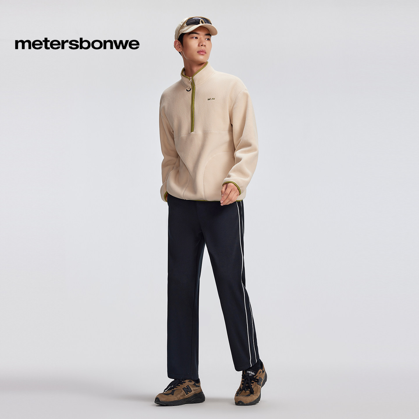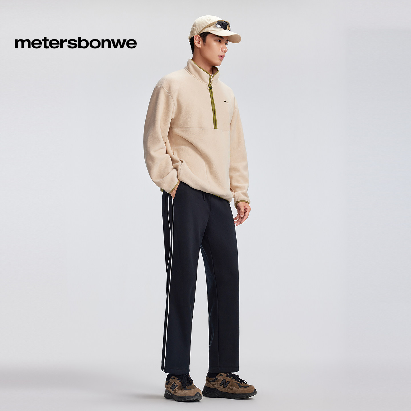 美特斯邦威直筒裤男士冬季新款舒适户外撞色嵌条银狐绒宽松下装男