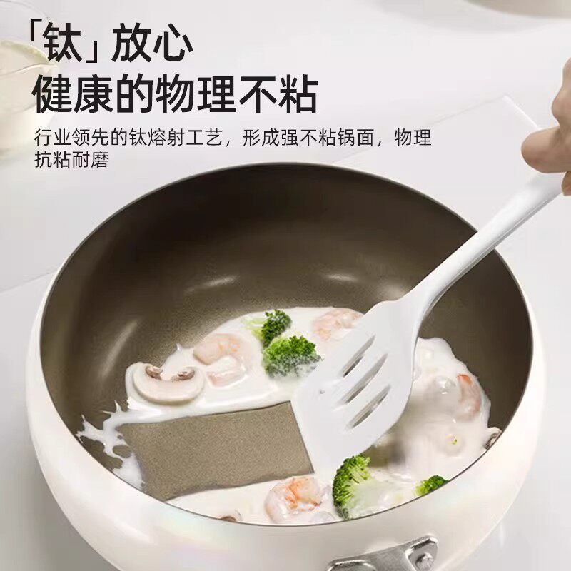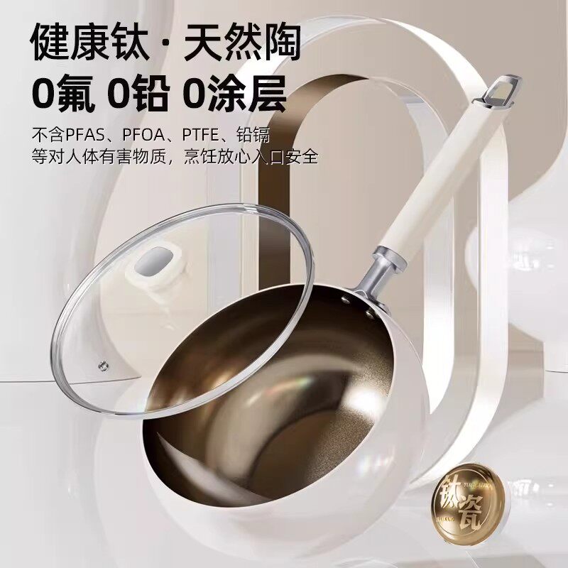钛陶瓷大肚锅不粘锅炒锅煎锅家用无涂层不沾平底炒菜锅燃气电磁炉
