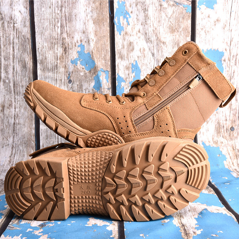 大虎新式棕色户外作战训靴减震耐磨正品侧拉链防水防穿刺登山靴男