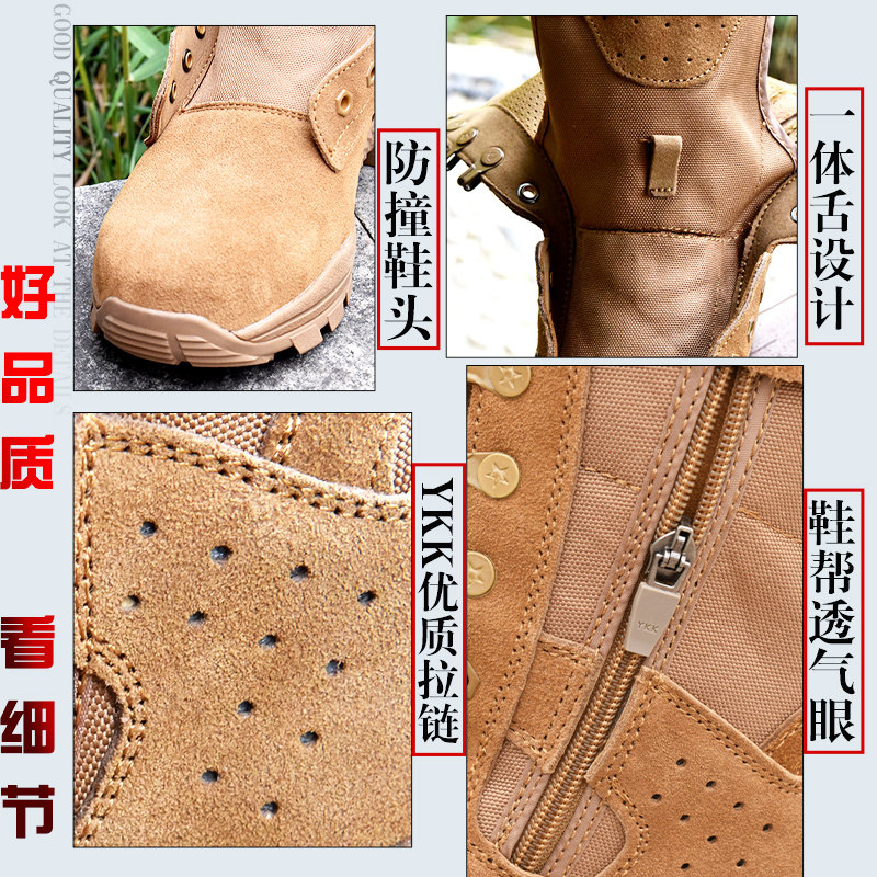 新款棕色作战靴套式作战训靴男高帮牛皮碳板登山作战鞋户外沙漠靴