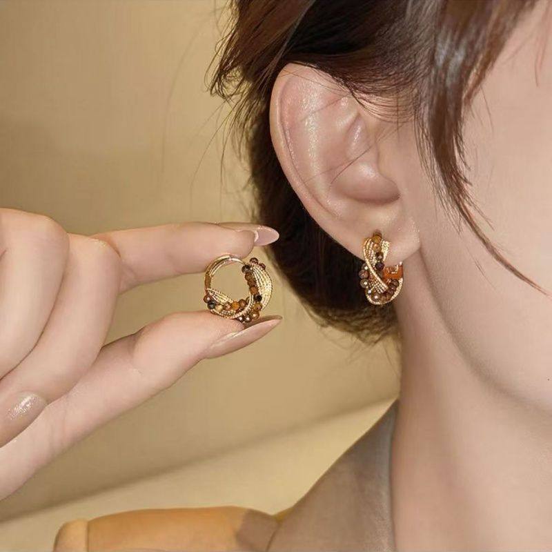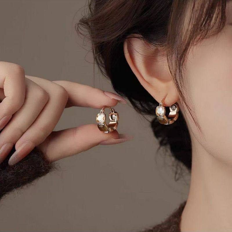法式圈圈耳环2024新款爆款耳钉小众设计素圈耳圈耳扣女高级感耳饰