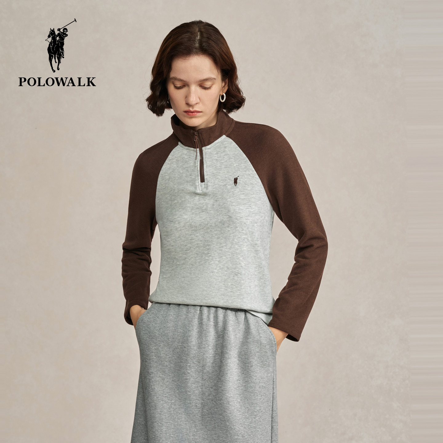 POLOWALK女装打底衫2026春季新款女士长袖T恤半高领休闲套头衫女