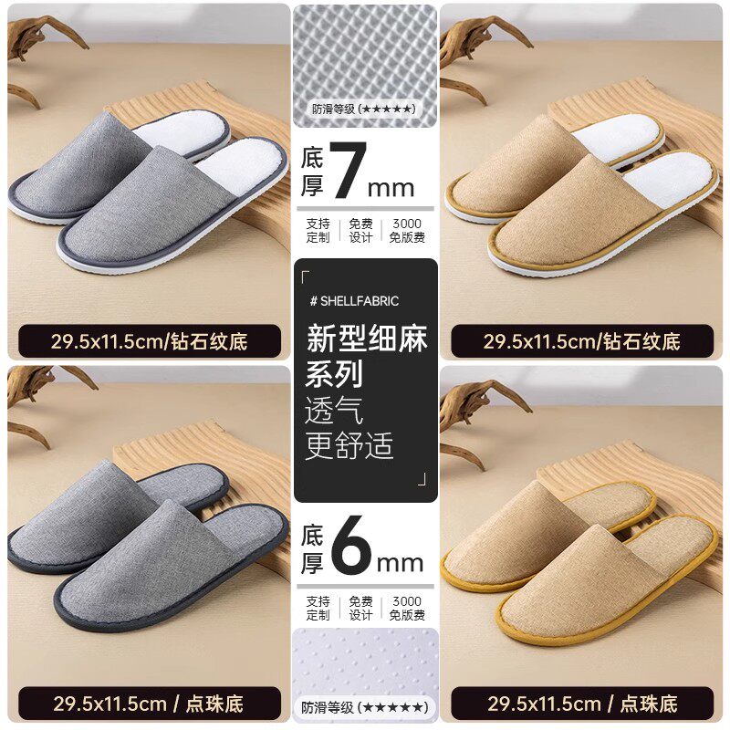 酒店宾馆美容院居家待客亚麻拖鞋旅行用品防滑厚底亚朵全季冬季