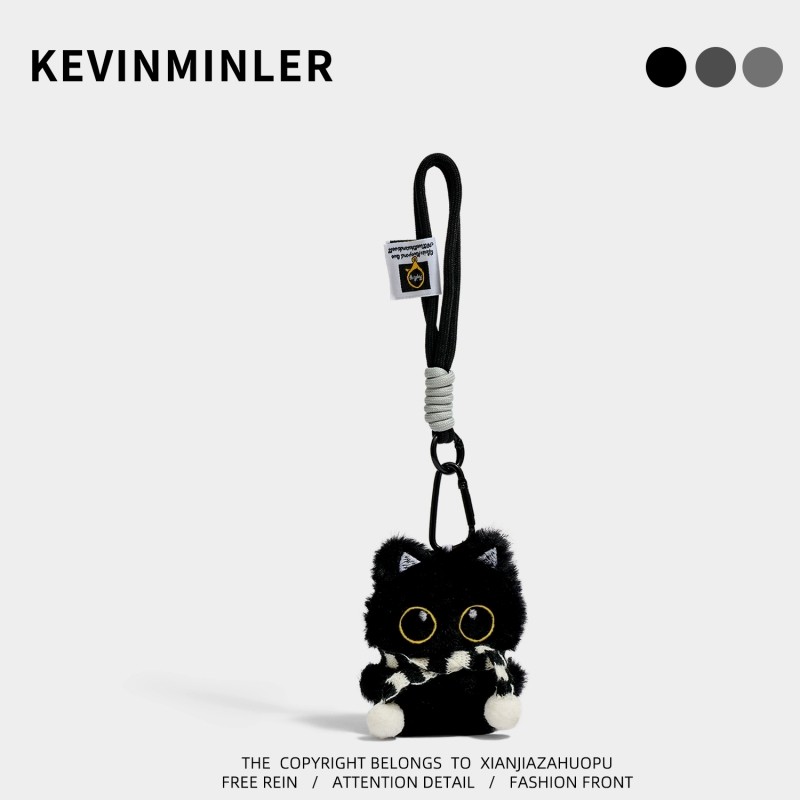 KEVINMINLER原创可爱小黑猫毛绒公仔钥匙扣包挂件玩偶车挂饰礼物