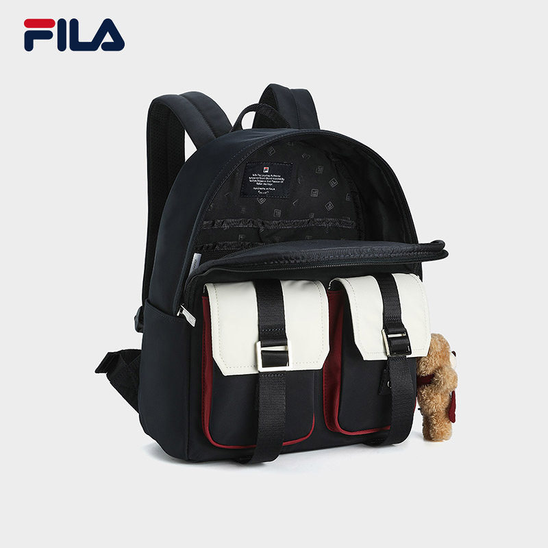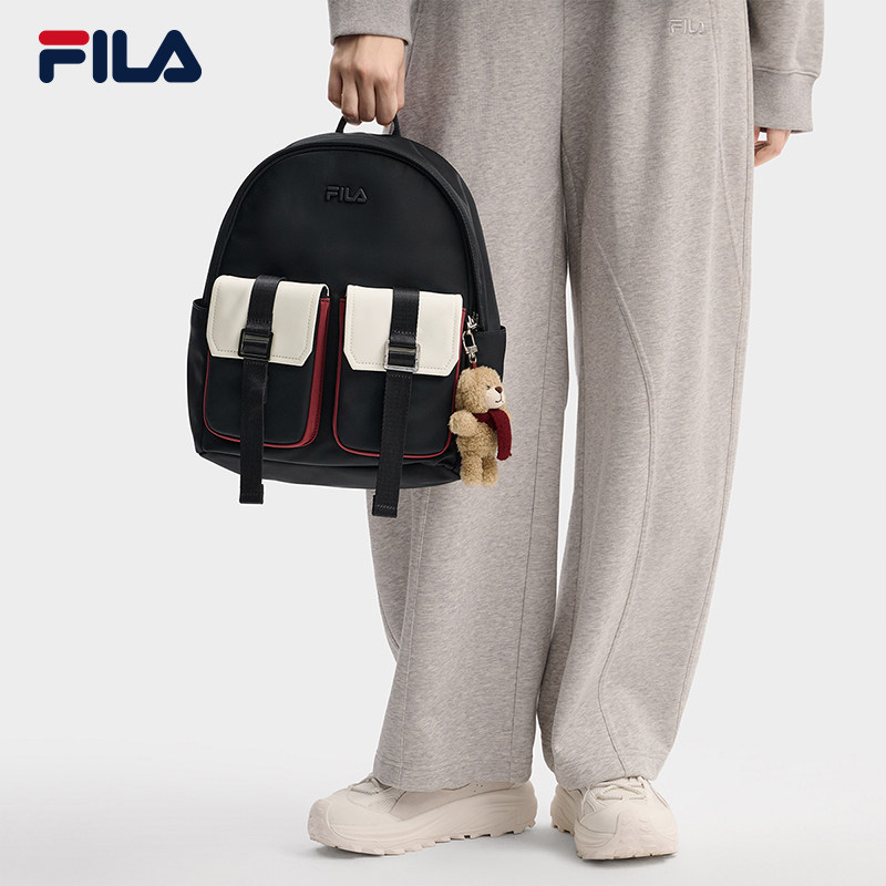 背包|FILA 斐乐官方女包时尚休闲撞色双肩包多口袋小挂件黑色书包