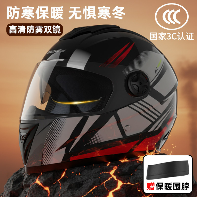 3C认证电动摩托车头盔男女四季通用盔秋冬保暖防雨防雾全盔安全帽