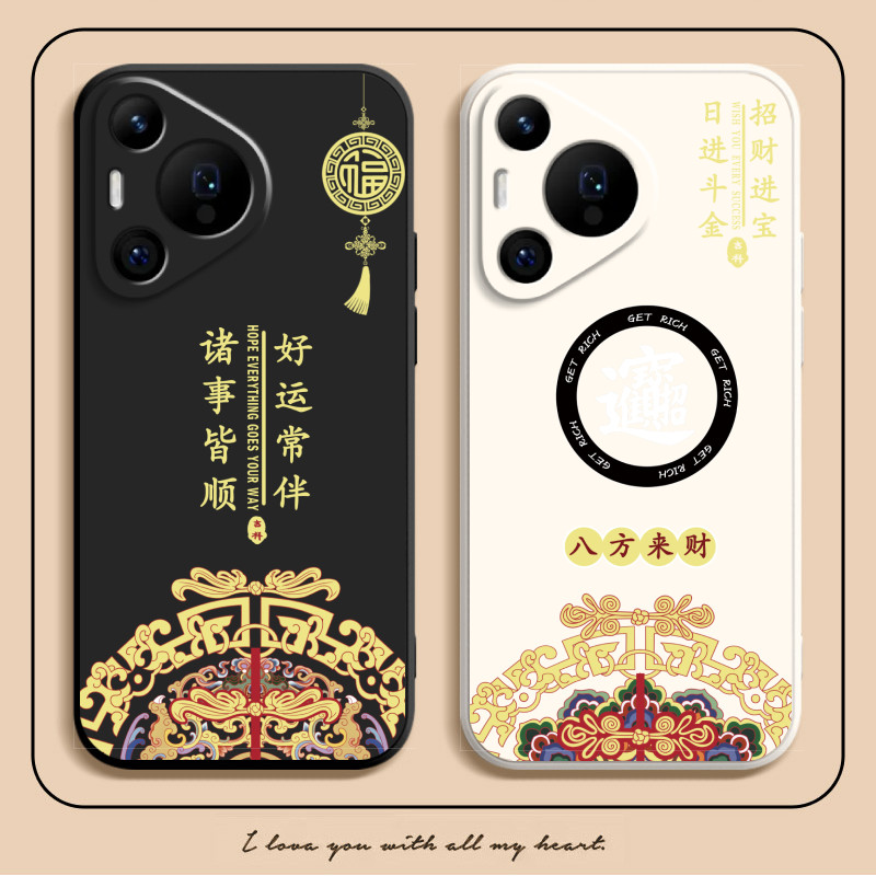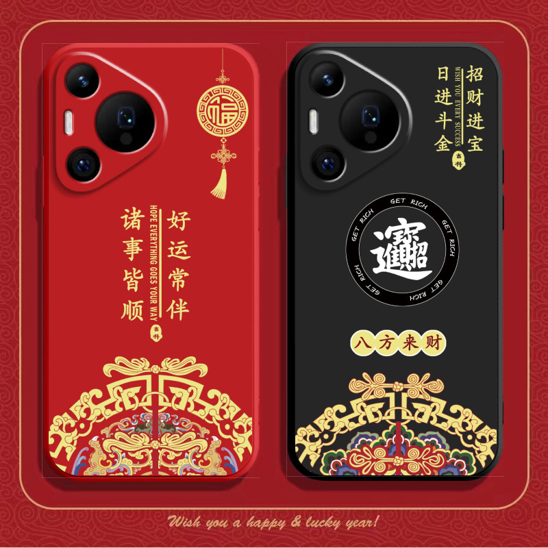 八方来财适用华为Pura80手机壳Pure80Pro+中国风P80ultra液态硅胶prua保护套全包防摔uitra高级感por十软外壳
