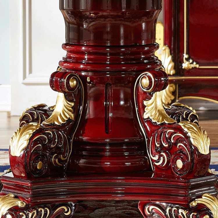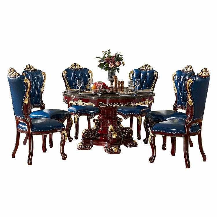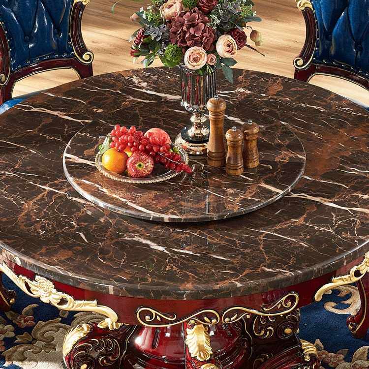 欧式大理石餐桌椅子组合实木圆形大户型别墅圆台红檀色8-10人饭台