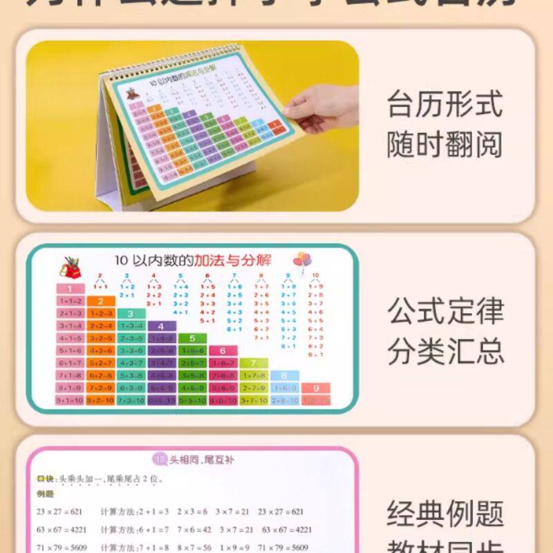 加减法口诀表10以内的分解与挂图数学公式台历大全定律乘法单位