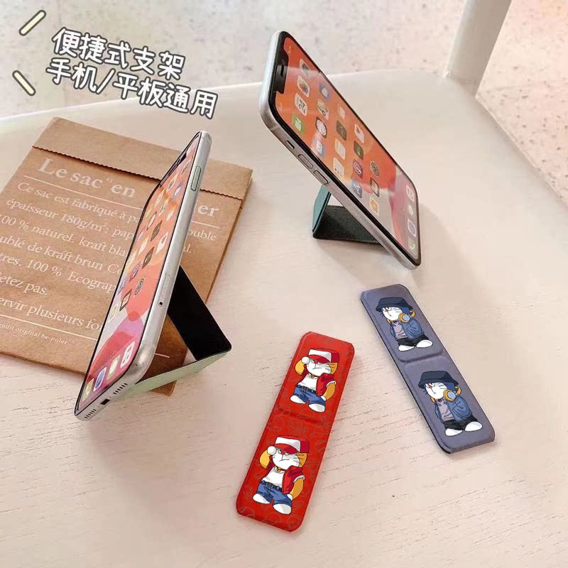 粘贴式手机磁吸车载懒人多功能支架防滑防摔背贴折叠支架机器猫