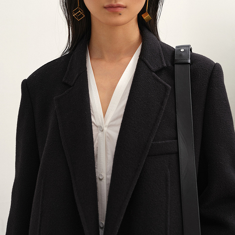 MPAM绵羊毛羊绒双面呢大衣时尚气质立领羊毛外套女