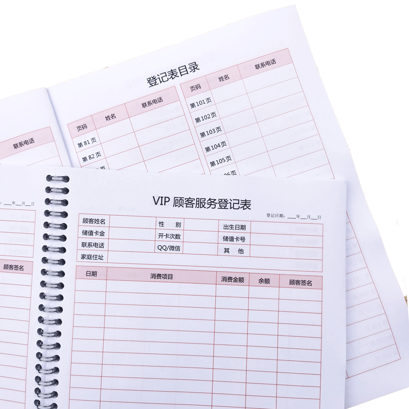 VIP会员登记本美发美容院护理顾客消费档案定做资料信息记录表高档美甲美睫理发客户跟踪私人客户消费表订制