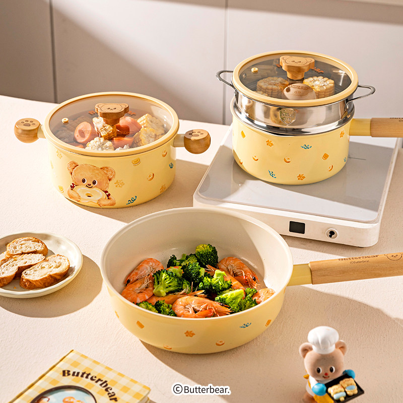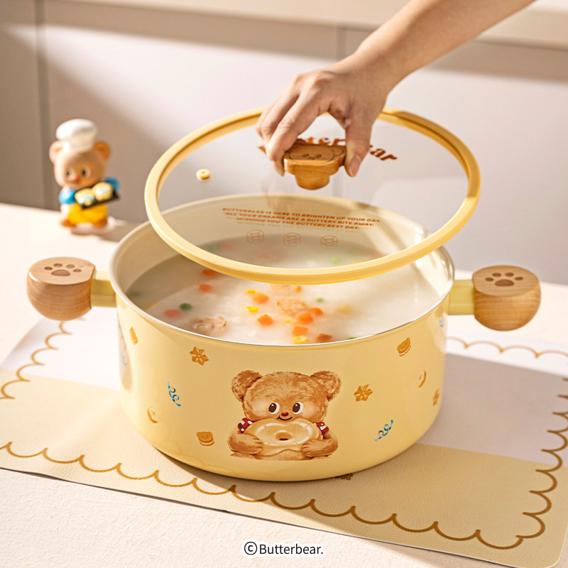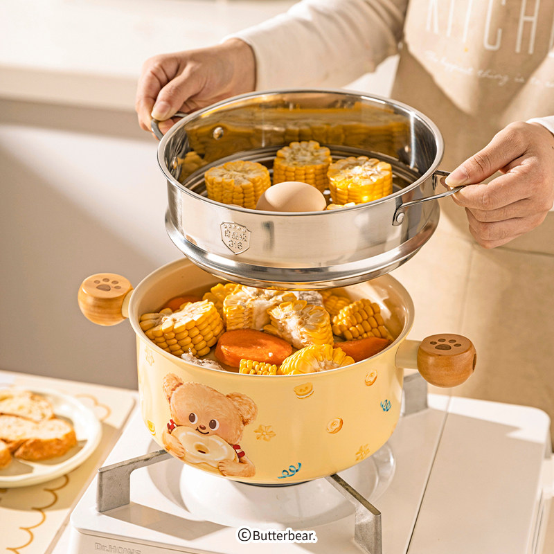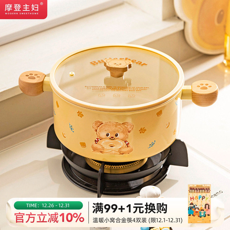 【摩登主妇&黄油小熊】钛陶瓷汤锅蒸锅家用电磁炉专用双耳炖煮锅