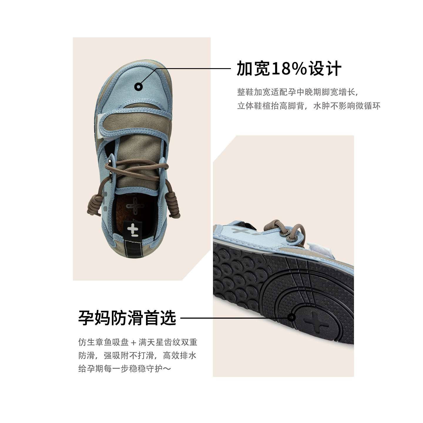 鞋头 & 鞋身科学加宽 透气 + 防滑双 buff