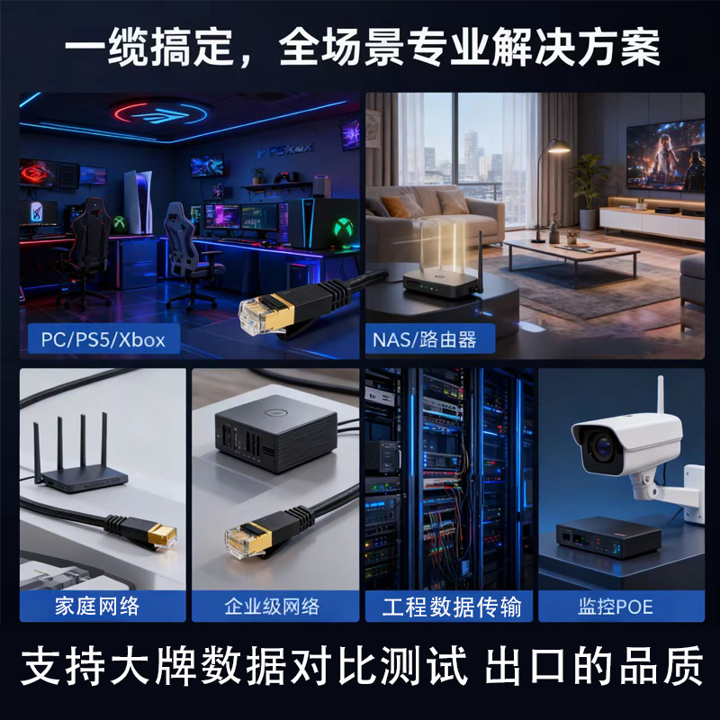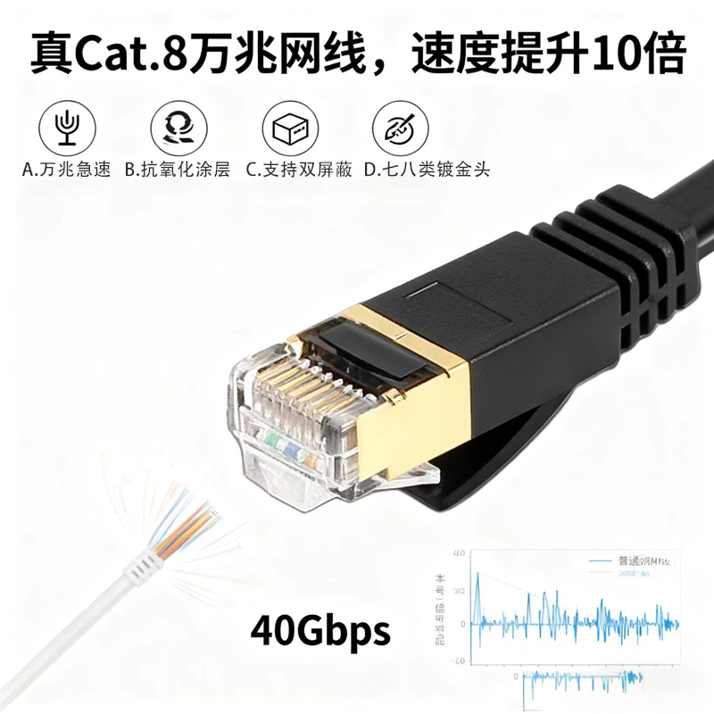 网线六七八类千兆万兆电竞工程上头大牌工厂水晶头室外双屏蔽高速