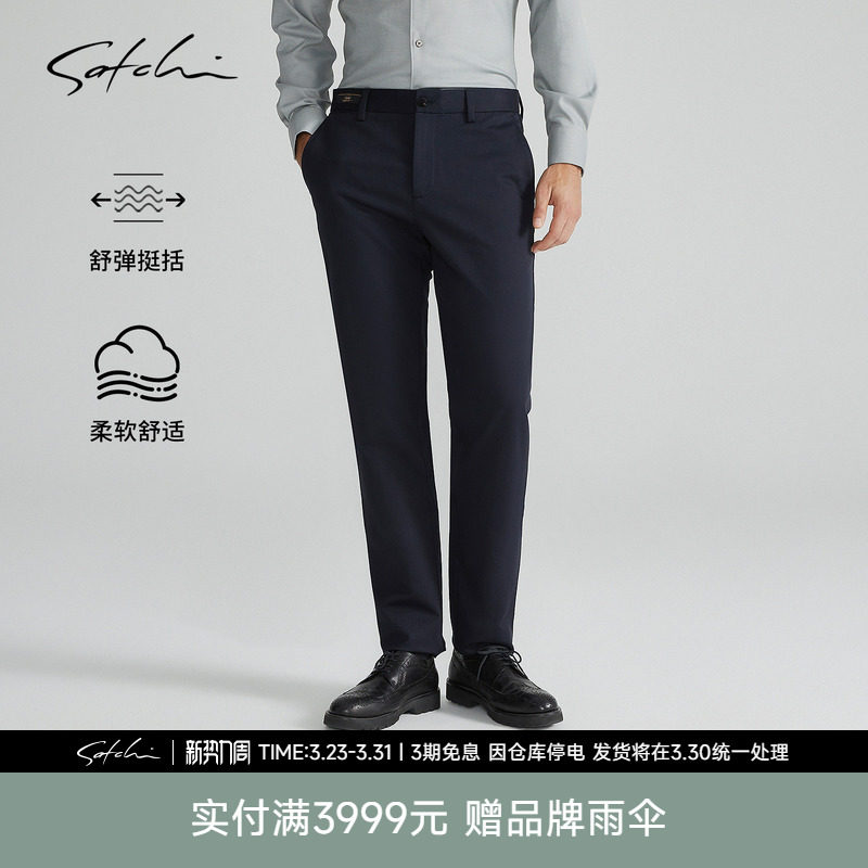 [1440面膜裤]SATCHI沙驰男装男士休闲裤春季新款商务直筒弹力裤子