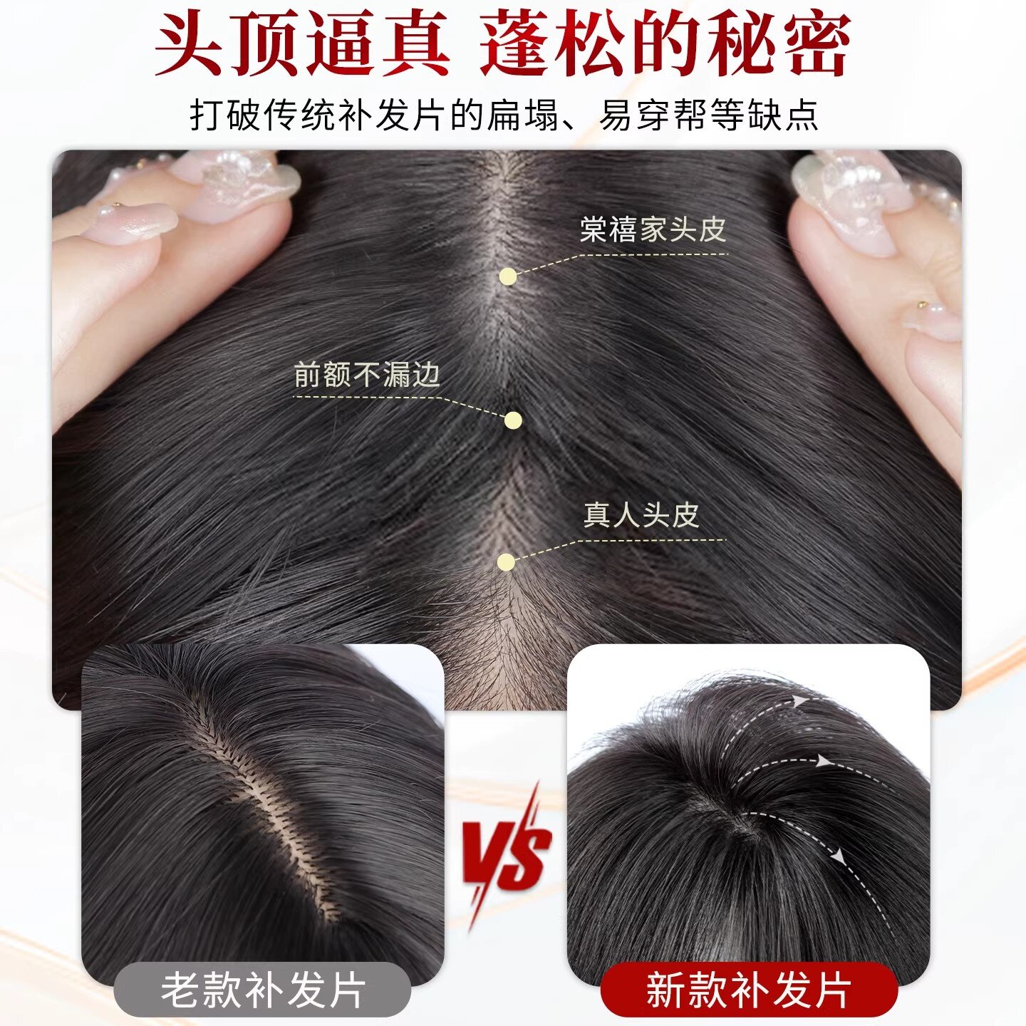 假发女发缝头顶全真发增发量补发蓬松遮白发高颅顶自然刘海片前额
