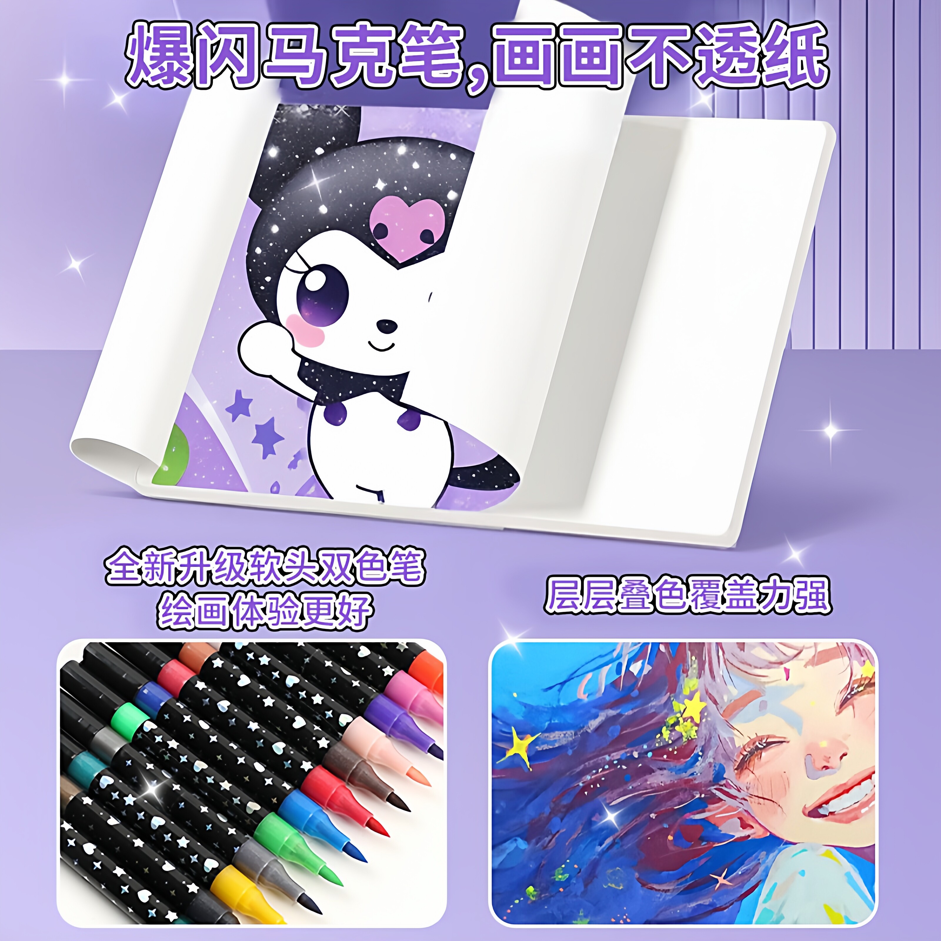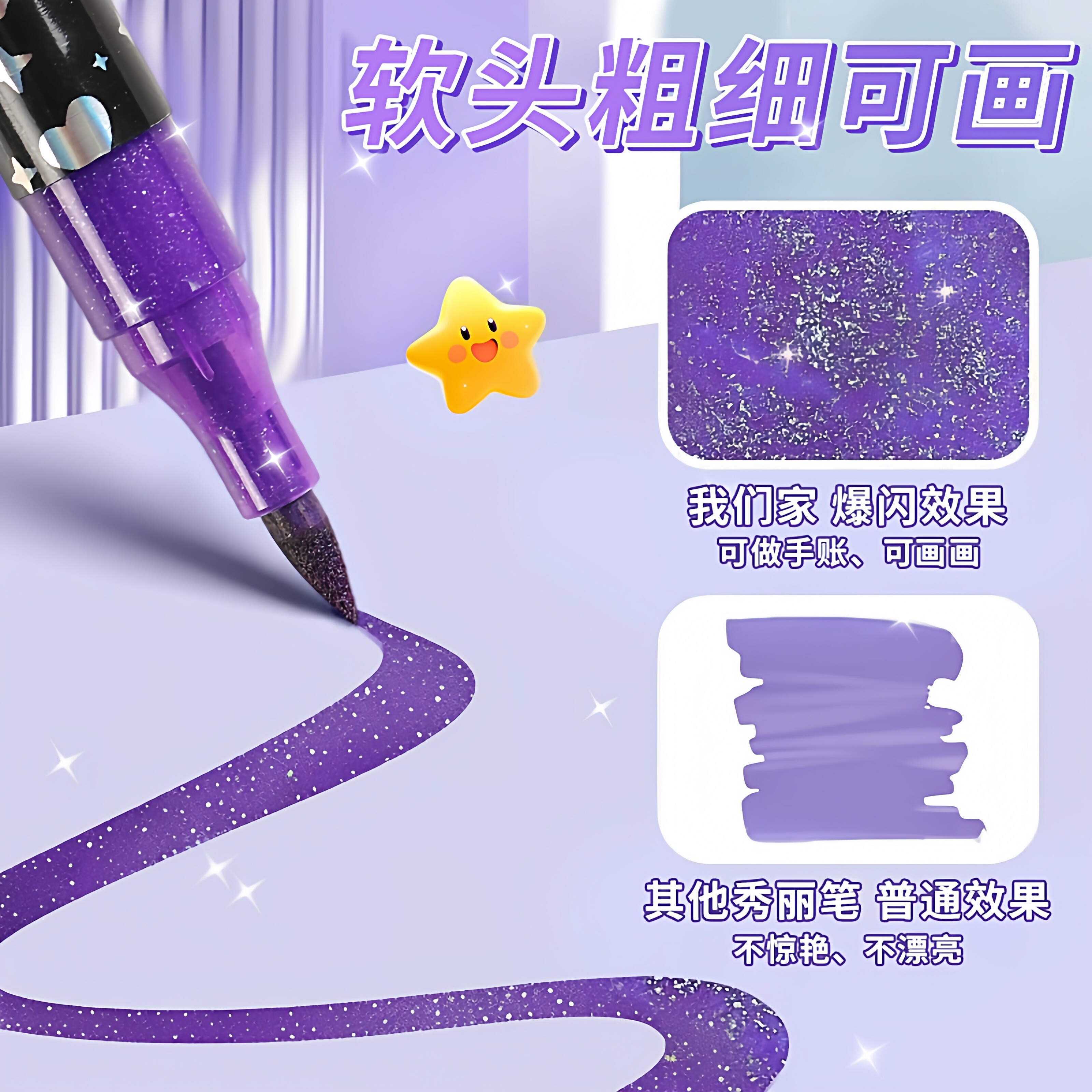 双头双色闪光马克笔软头水彩笔手账专用绘画闪粉彩笔儿童无毒可洗