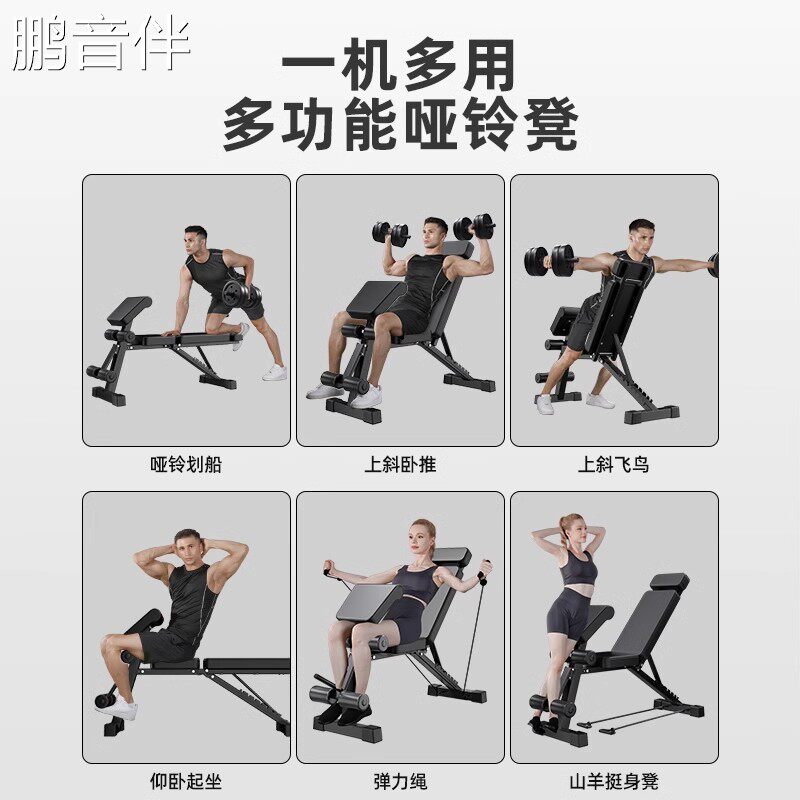 鹏音伴哑铃凳健身椅多功能仰卧起坐辅助器健身器材家用折叠板锻炼卧推凳摆件饰品