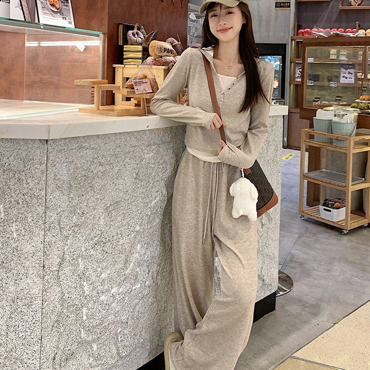 2026春款套装两件套长袖女运动休闲通勤慵懒时尚百搭阔腿裤套装xw