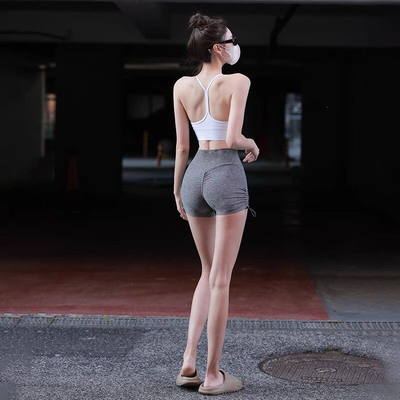 蜜桃臀瑜伽短裤女2025新款高腰提臀抽绳运动外穿健身裤速干休闲