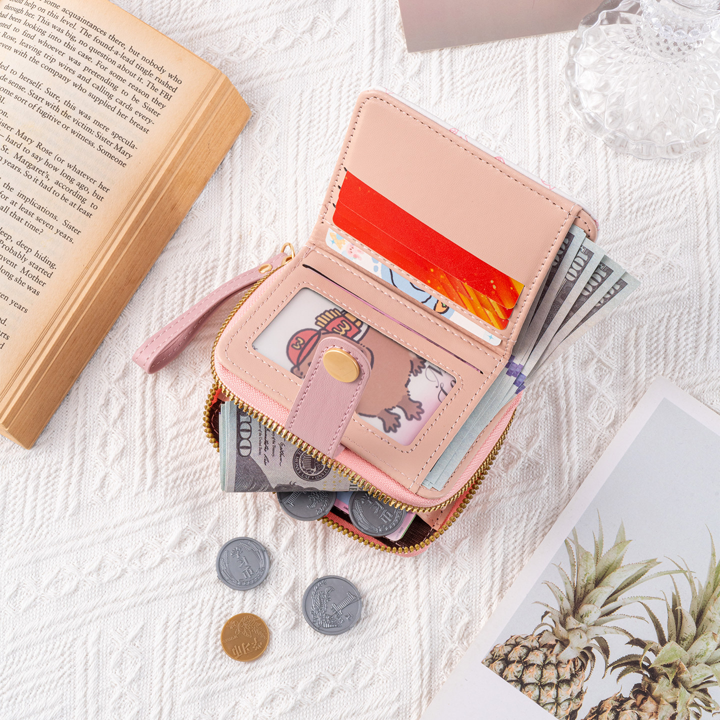 新日系男女个性拉链短款零钱包手拿包硬币卡包mini口袋包收纳小包