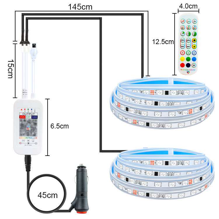 一拖二汽车门边踏板灯条遥控RGB幻彩门边踏板灯LED行车灯条