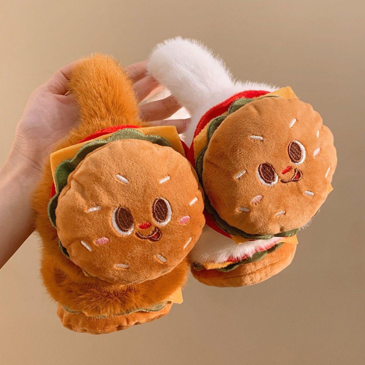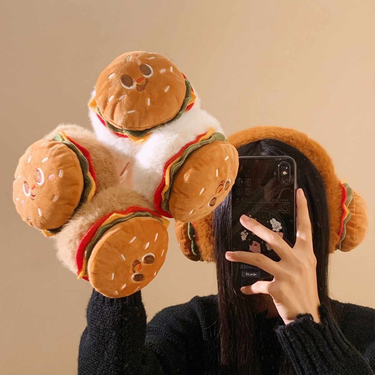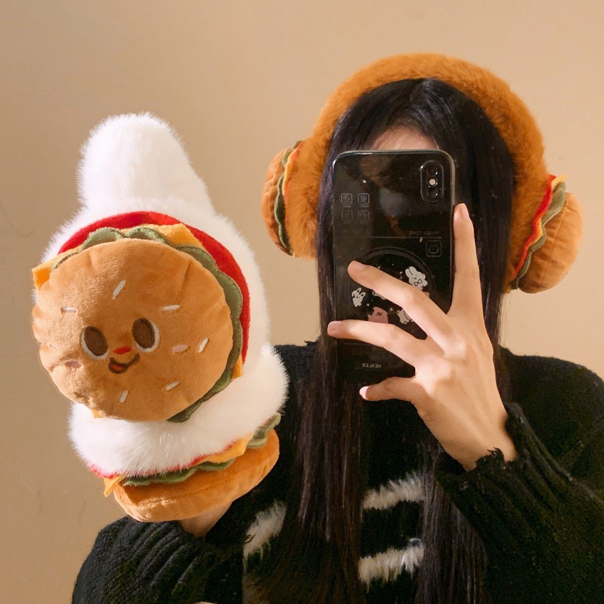可爱汉堡包毛绒耳罩女冬季护耳朵防寒耳套骑行保暖耳暖耳包耳捂子