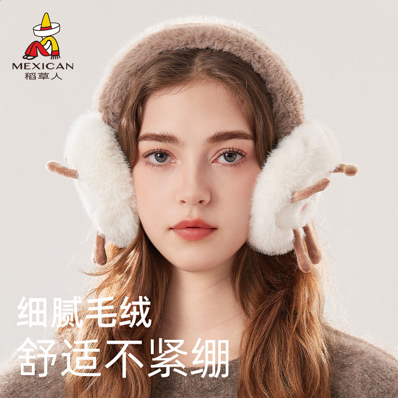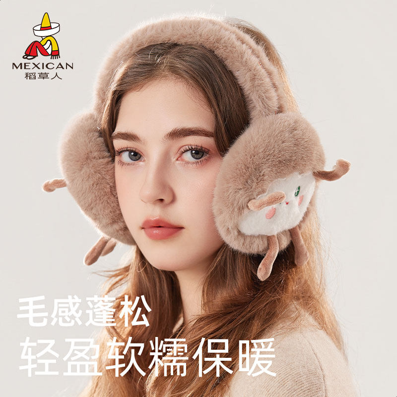 稻草人秋冬季毛绒耳罩可爱保暖防寒耳套骑行防风护耳朵耳捂子耳包